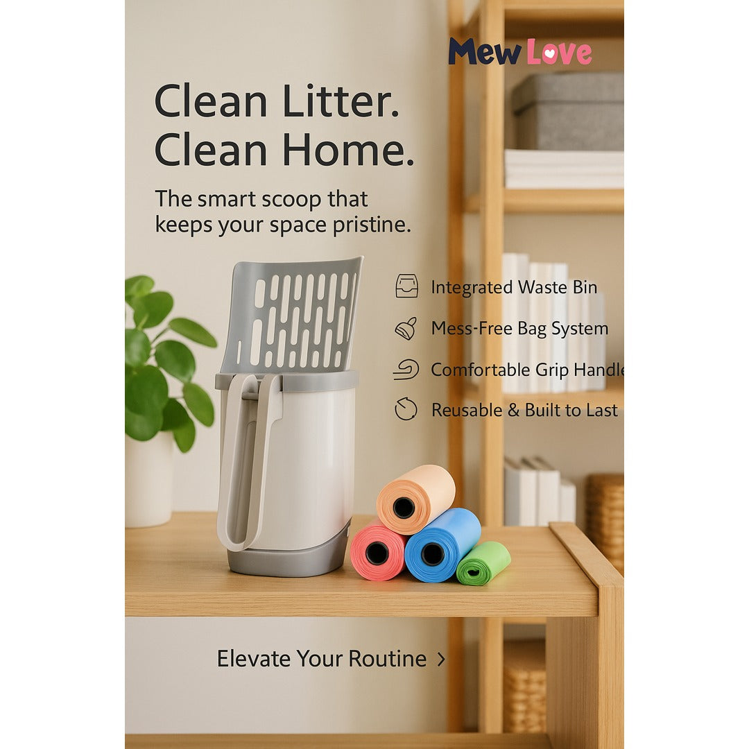 MewLove Cat Litter Scoop – Built-In Waste Container & Bags