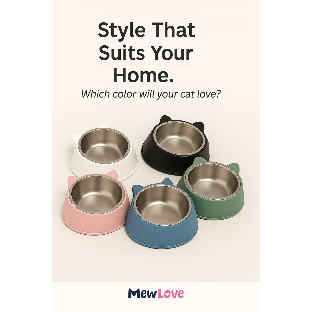 MewLove Stainless Steel Cat Bowl – Tilted Cat-Ear Design